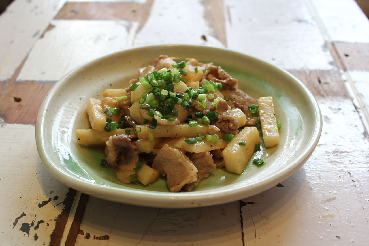 【長芋と豚肉の甘辛炒め】 2人分