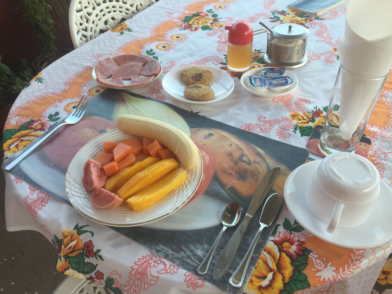 朝ご飯は、大体、フルーツ盛り合わせとパン、オムレツとハム、って感じでリゾートの朝食みたいな感じですね。南国に共通してますが、マンゴーとかパパイヤ、グアバみたいな千疋屋で買ったら諭吉が瞬殺されるようなフルーツを気軽に食べられるのがいいですよね。