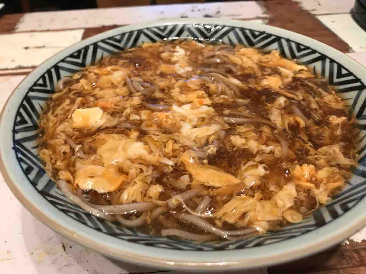 ポイントは2つで、片栗粉→卵の順に行うこと、それから卵を入れる際は割と中強火の熱い状態で行うことです。これで綺麗なあんかけ玉子になりますよ~。