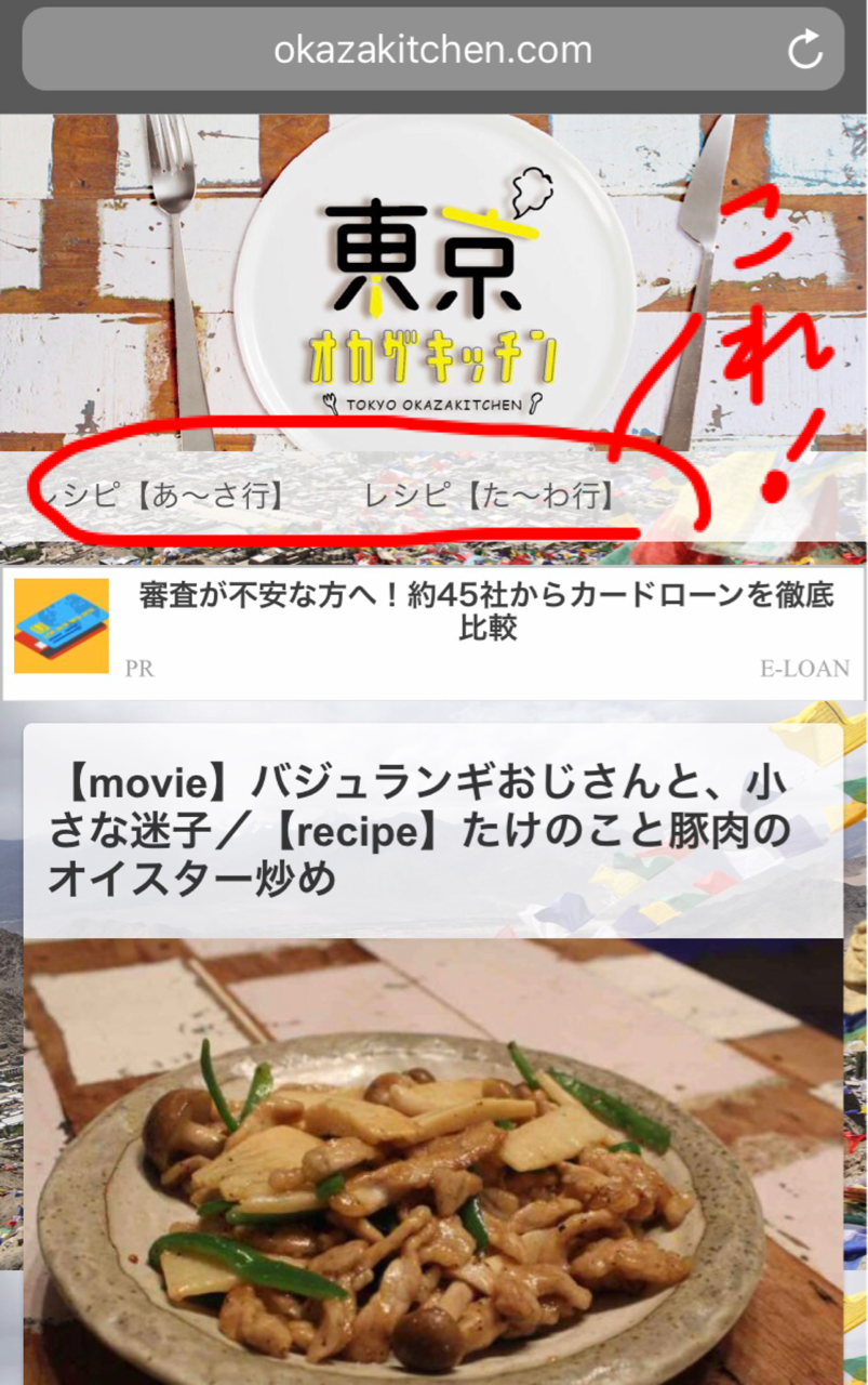 それから、レシピを五十音順に並べたページもスマホの方はトップページの画像下にメニューがあるのを知ってましたか??