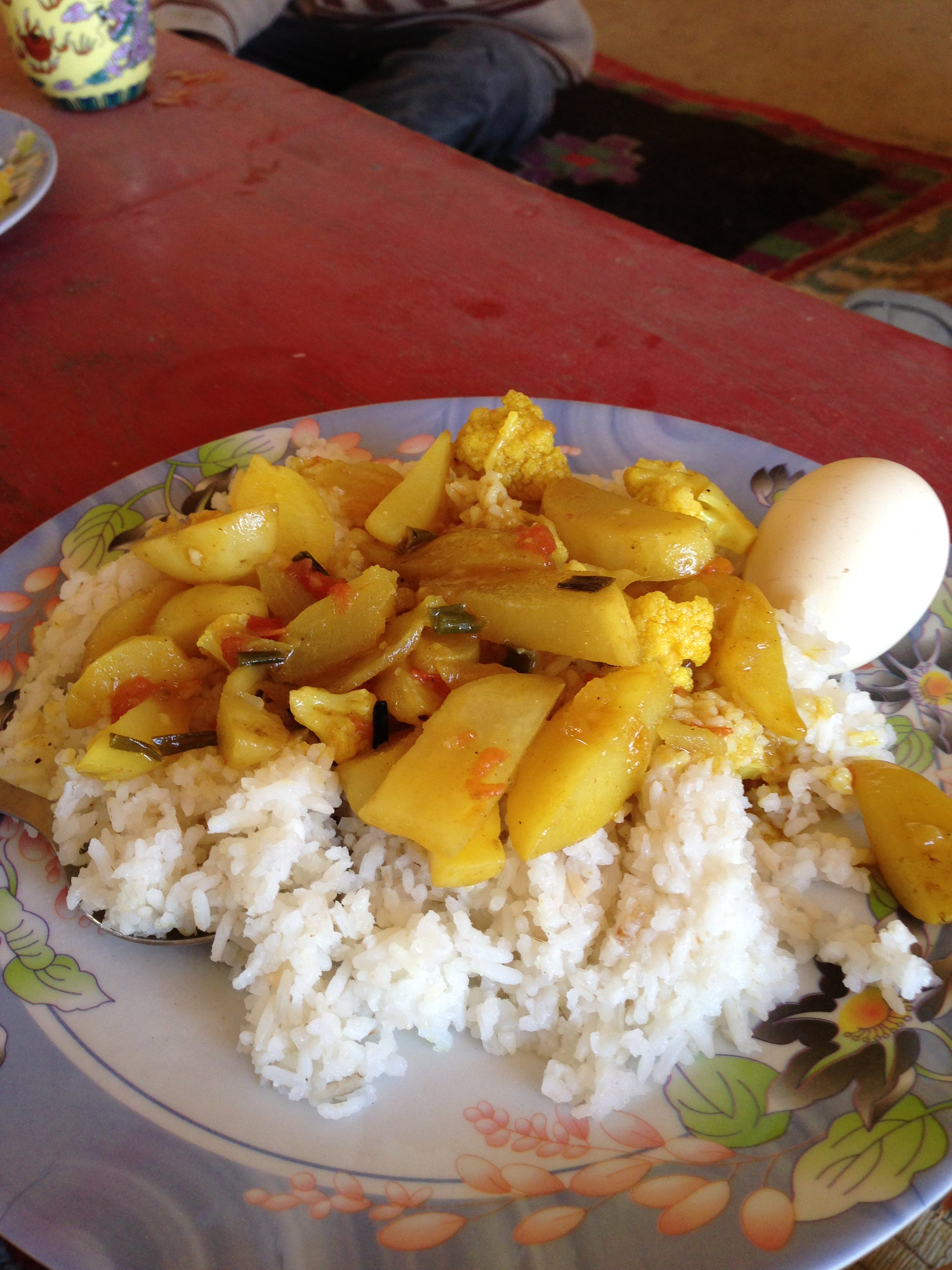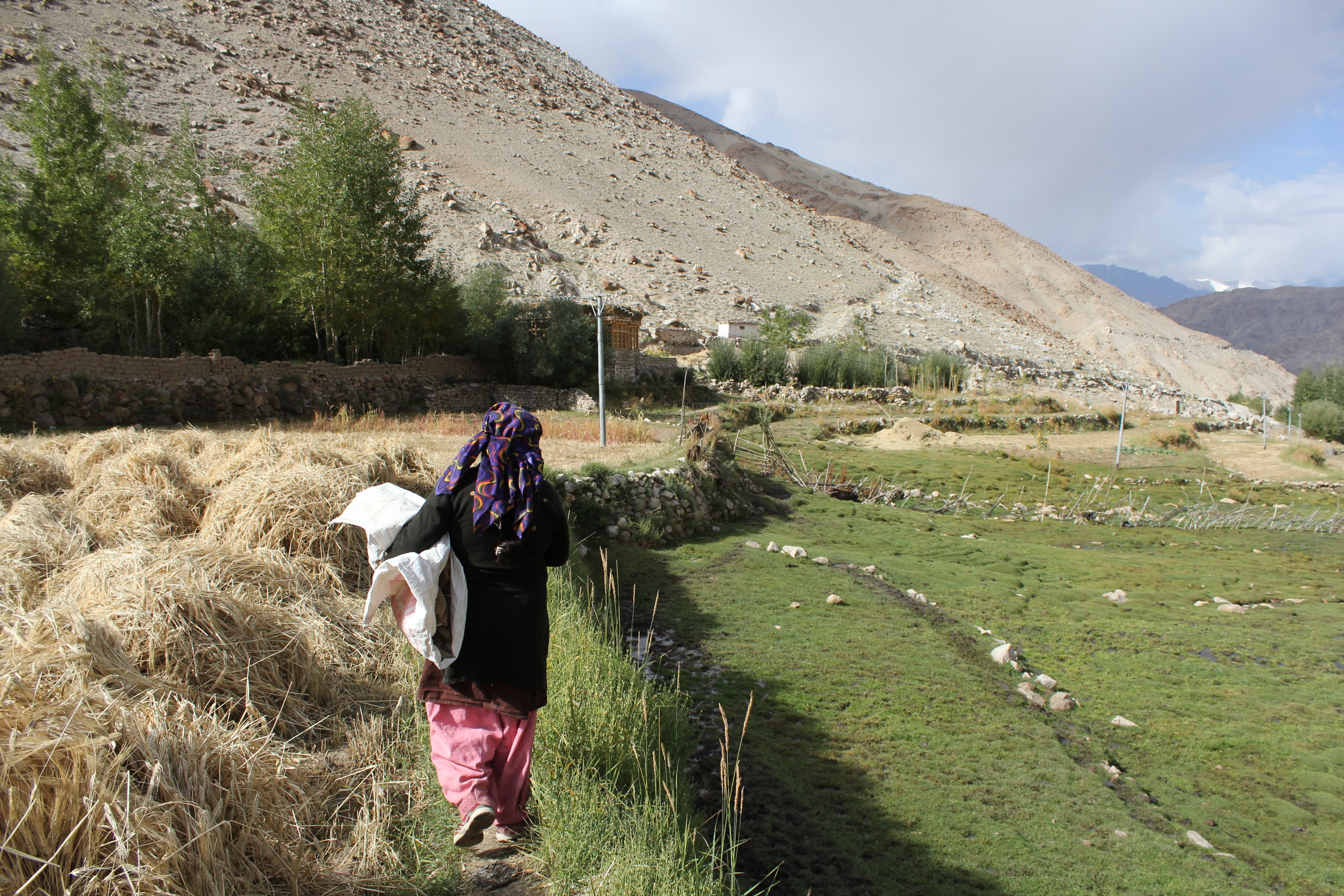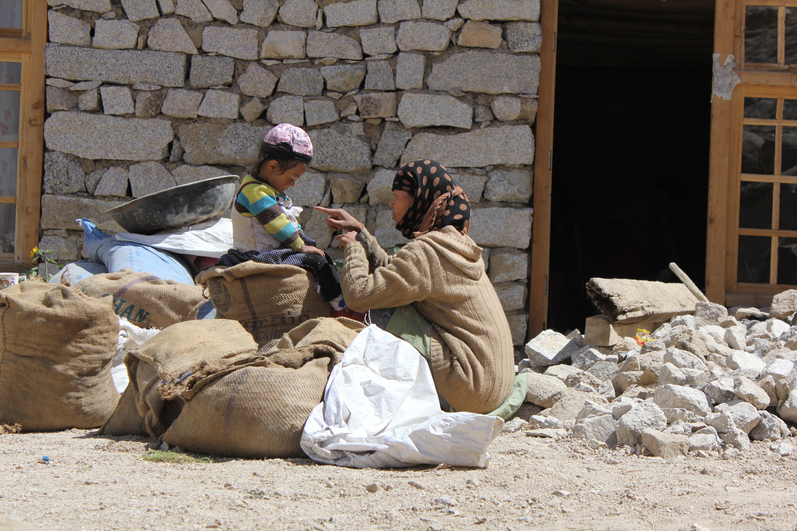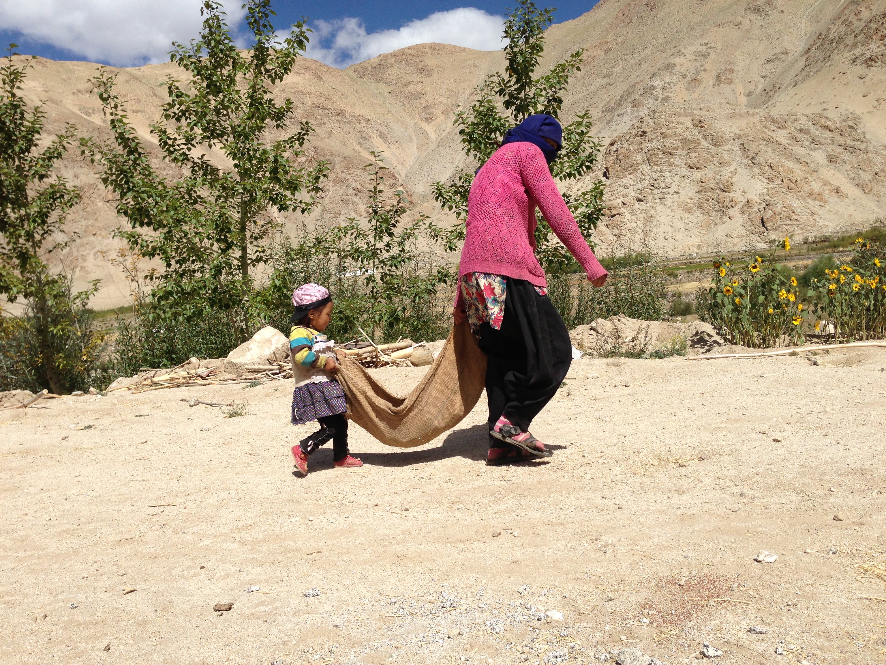そして午後は更なるハードワーク。新しく作っている家の床に敷く石をひたすら運んで敷き詰める作業。任せろ、働かざる者、食うべからず! 東京オカザキッチン、普段は東京で出版会社に勤めていますが、まさか遠い地ラダックで家造りの土方作業をやるとは思っていませんでした。休憩を挟みながら昨日と同様日没まで。