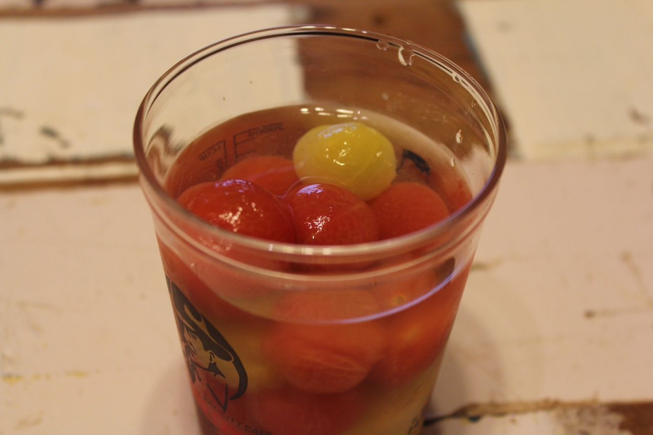 1.ミニトマトは軽く切れ目を入れて熱湯で少し茹でたら、冷水にさらし湯剥きする。